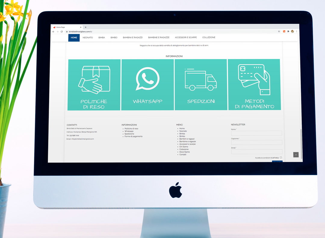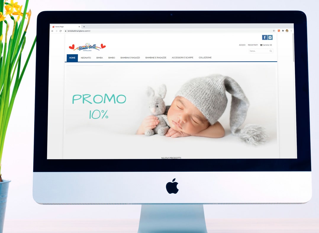 Per il nuovo sito web di Bimbi belli, negozio di abbigliamento di Marigliano in prov. di Napoli, sono state selezionate le immagini più affini alle categorie di riferimento, successivamente ottimizzate per tutte le sezioni della home page quali banner, categorie di genere ed età, sezioni di informazione e servizio.