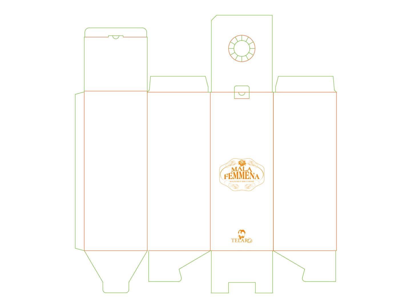 Le Cantine Telaro hanno commissionato un pack minimale ed elegante – con il logo stampato a caldo – per ospitare la loro bottiglia di vino Malafemmena.