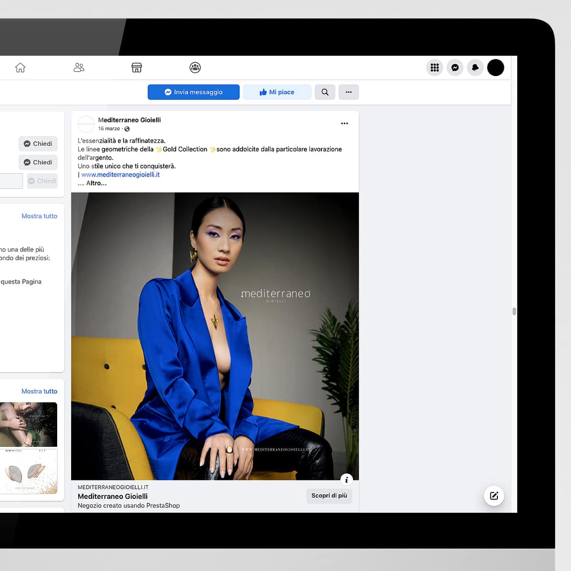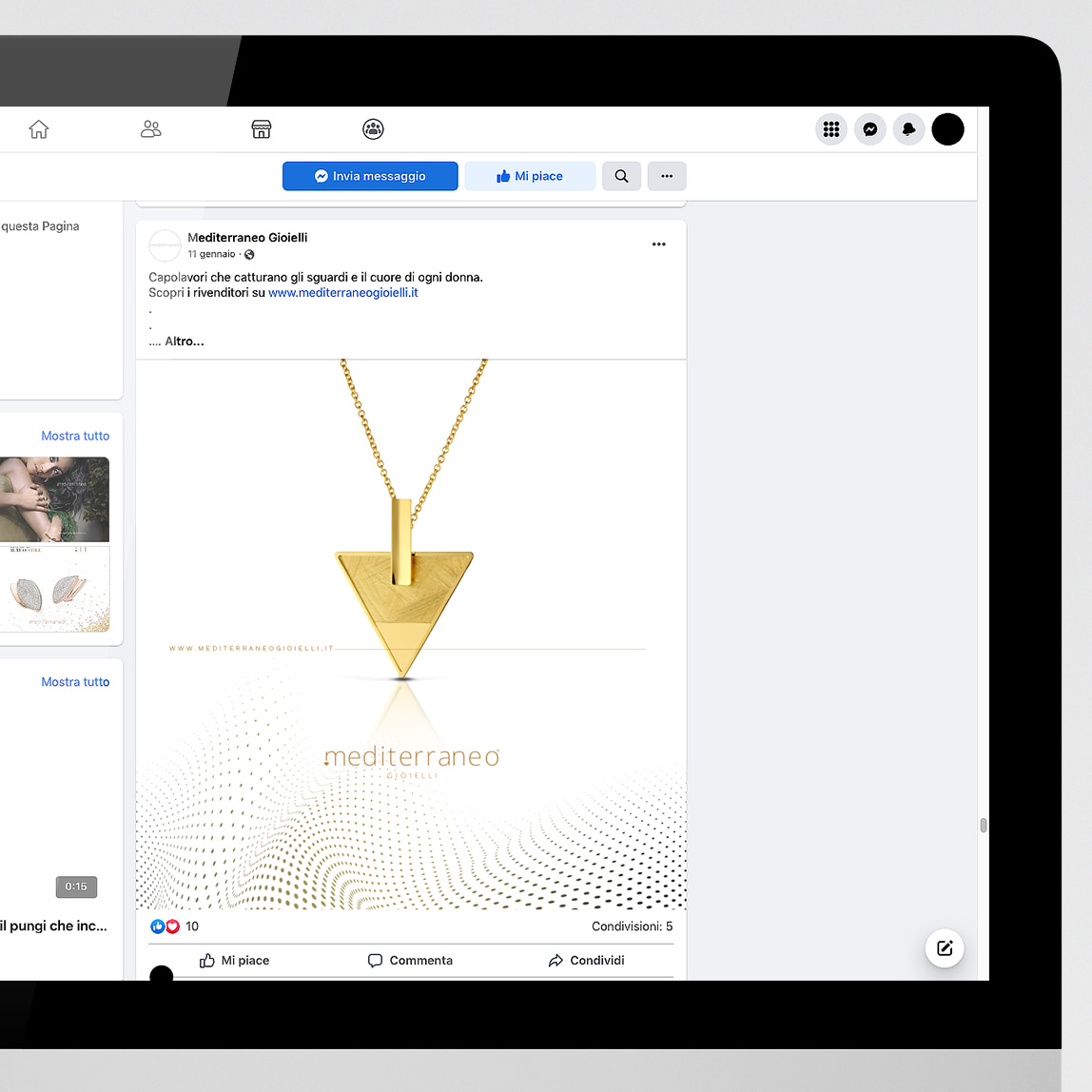 Mediterraneo srl – azienda di gioielli della prov. di Caserta -, ha pubblicato su Fb ed Ig la campagna social (comprendente post e video) relativa la Collana e gli Orecchini della collezione Gold.