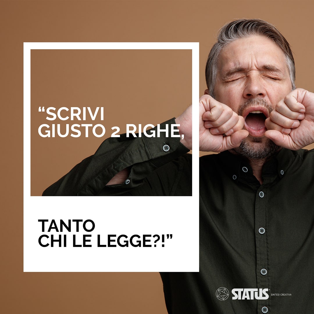 Status sintesi creativa ha pubblicato sulle proprie pagine social (Fb e Ig) questa serie di post denominata “Pantone”:attraverso la creatività e l’ironia ha comunicato al pubblico la propria essenza di agenzia pubblicitaria.